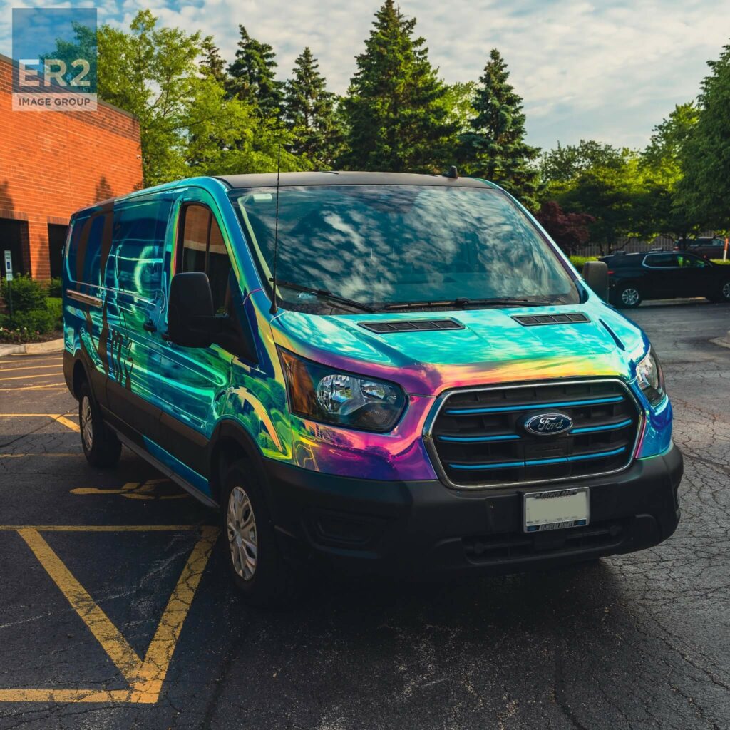How’s this for ensuring your ride stands out? A special dichroic film was used recently on a vehicle wrap for our friends at M13 Graphics,